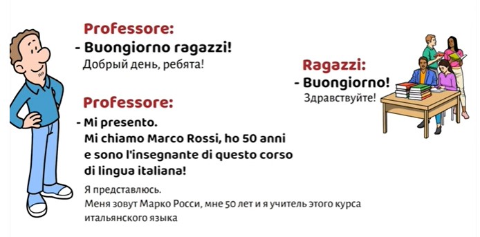 Mi chiamo Marco Rossi ho 50 (cinquanta) anni — Меня зовут Марко Росси, мне 50 (пятьдесят) лет,