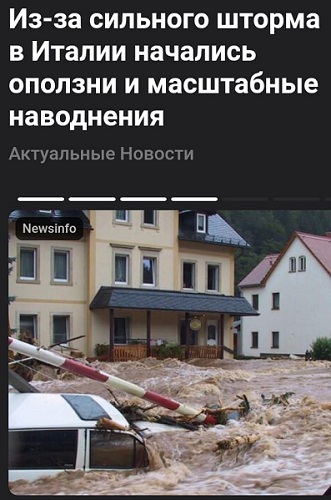 1. Из-за сильного шторма в Италии начались оползни и масштабные наводнения