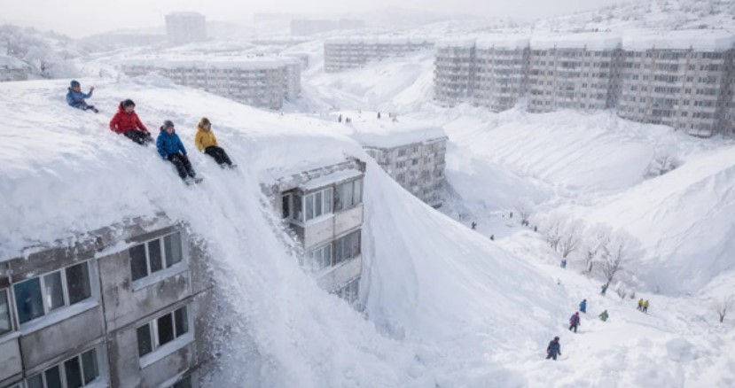 — I bambini scivolano giù da uno scivolo di neve dal tetto di un edificio a più piani? Non è vero!
