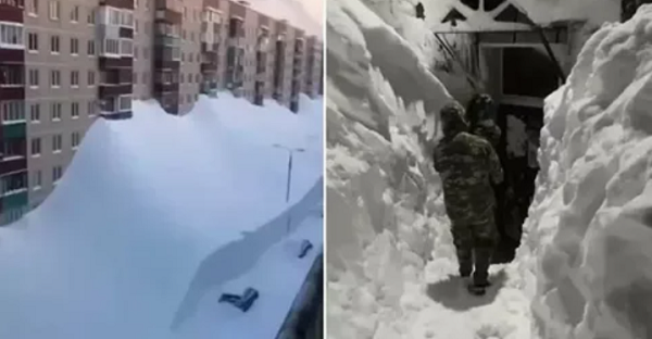 — e nei primi giorni di gennaio è stato aggiunto un altro 149% (centoquarantanove per cento) della norma - Сугробы до 3 этажа — Cumuli di neve alti fino a tre piani